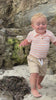 The Jetty Peach Stripe Jersey Onesie combines timeless design with summer friendly comfort. Crafted from soft, breathable fabric in gentle pastel hues, it features a classic wooden button detail that adds a natural touch.